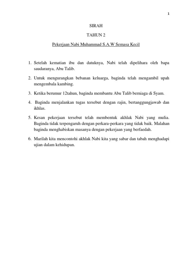 Sirah thn 2 pekerjaan nabi muhammad saw. Click here & upgrade expanded features pdf unlimited pages documentscomplemteodul pendidikan islam prasekolah sirah tajuk : Pra sekolah sirah nabi muhammad dan keluarga from iytimg baf39 lembaran . Kuiz online sirah nabi dan keturunan pendidikan islam ppki tahun 1.
